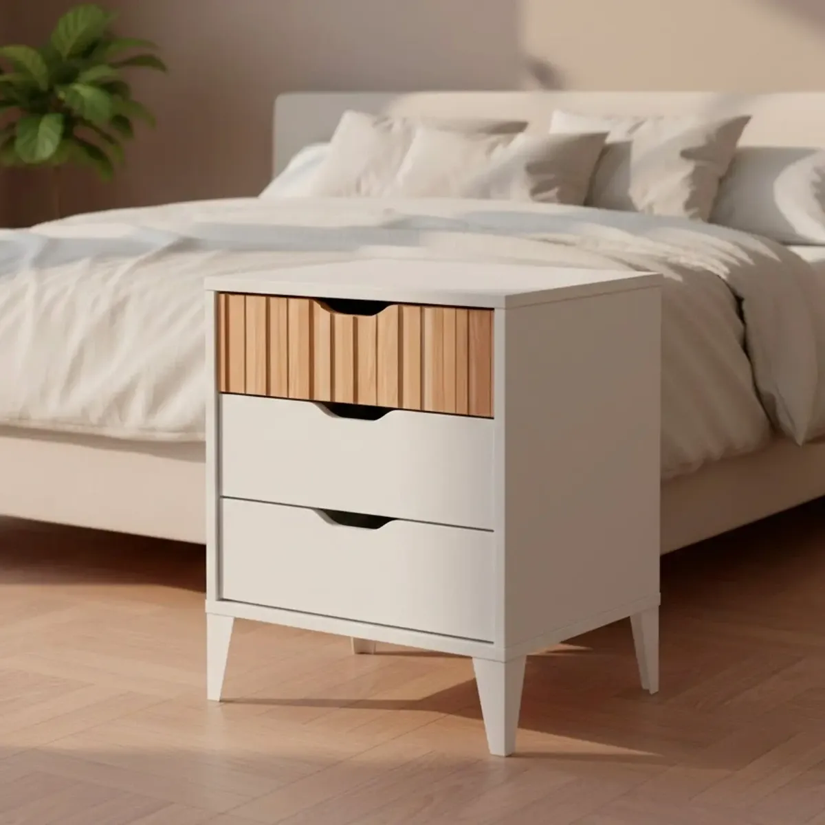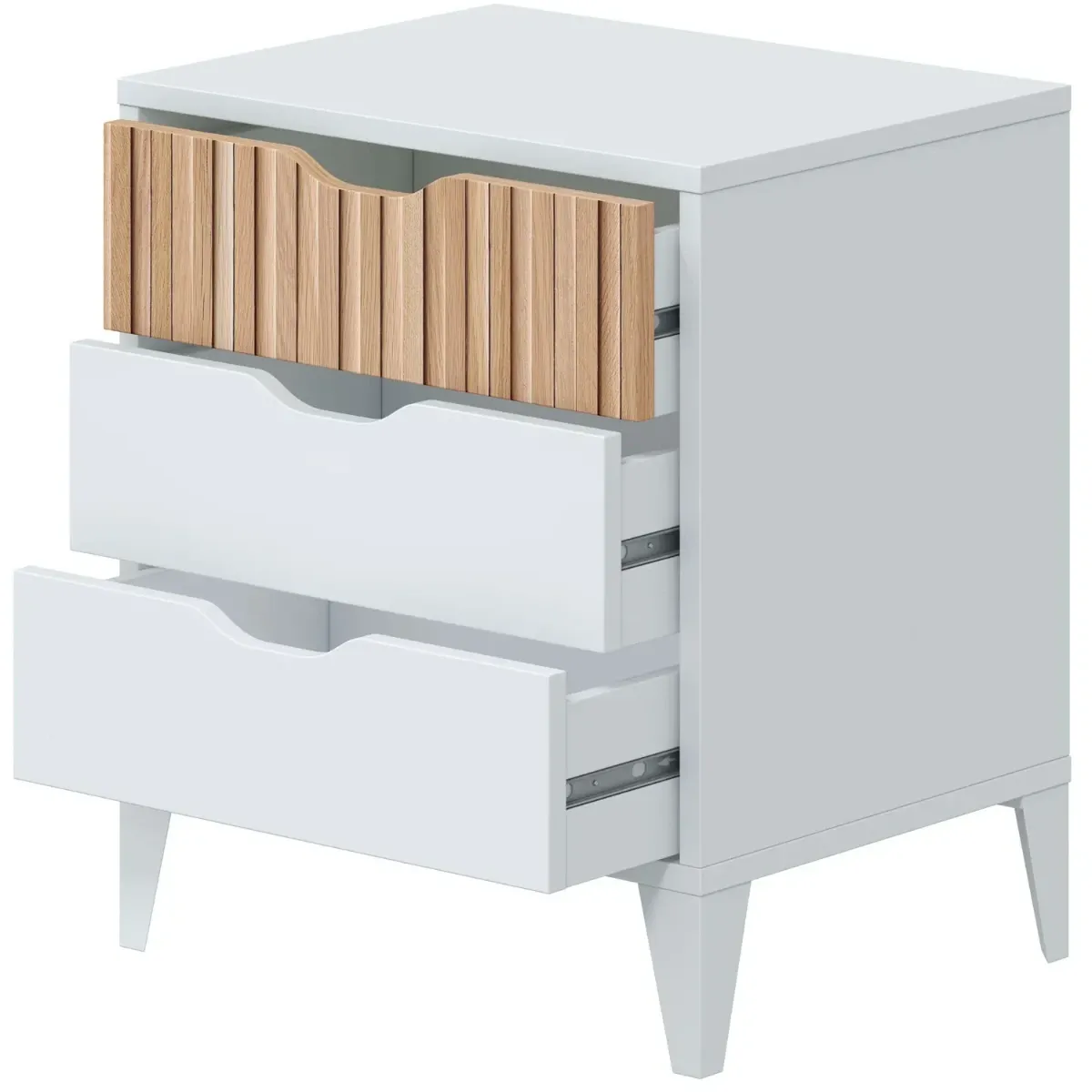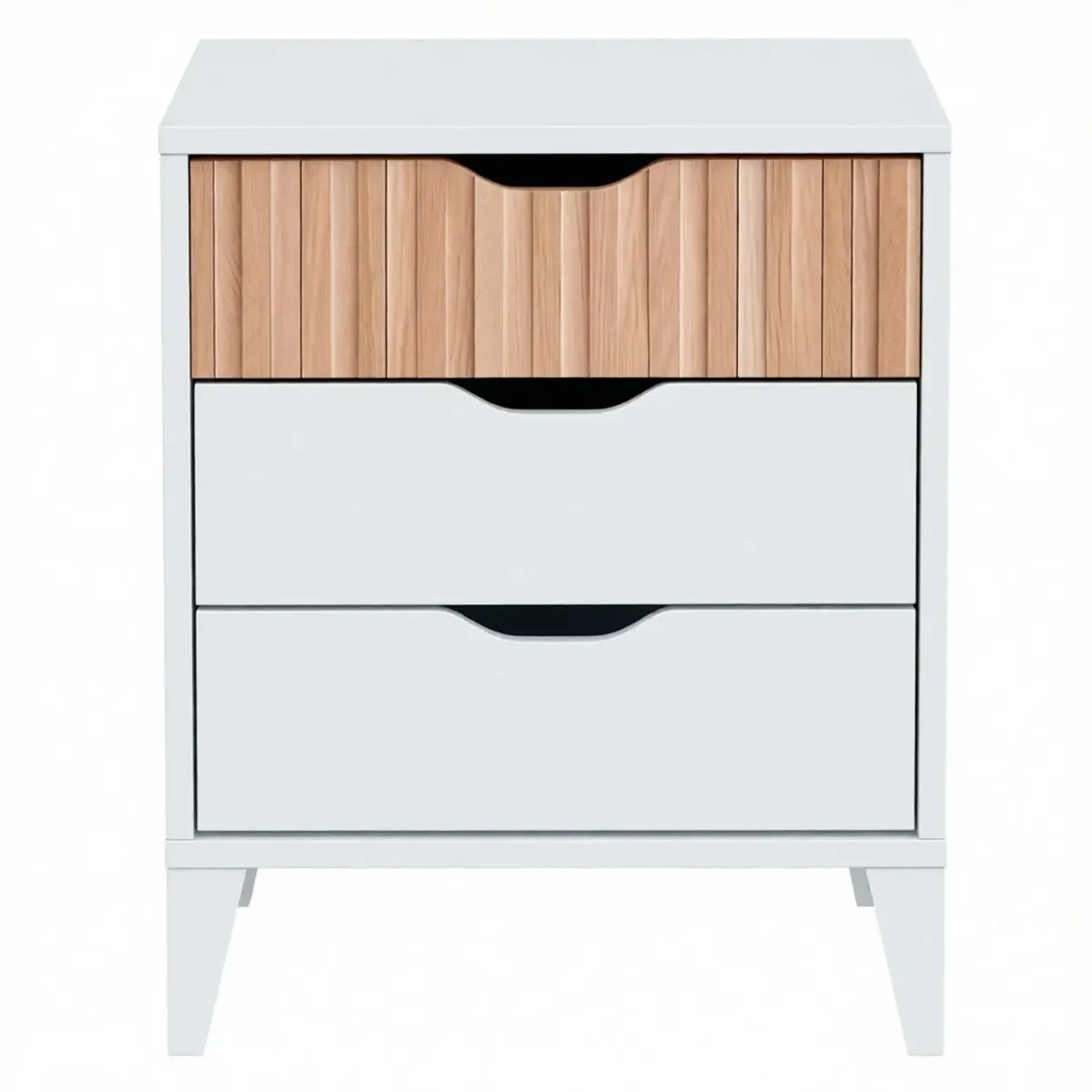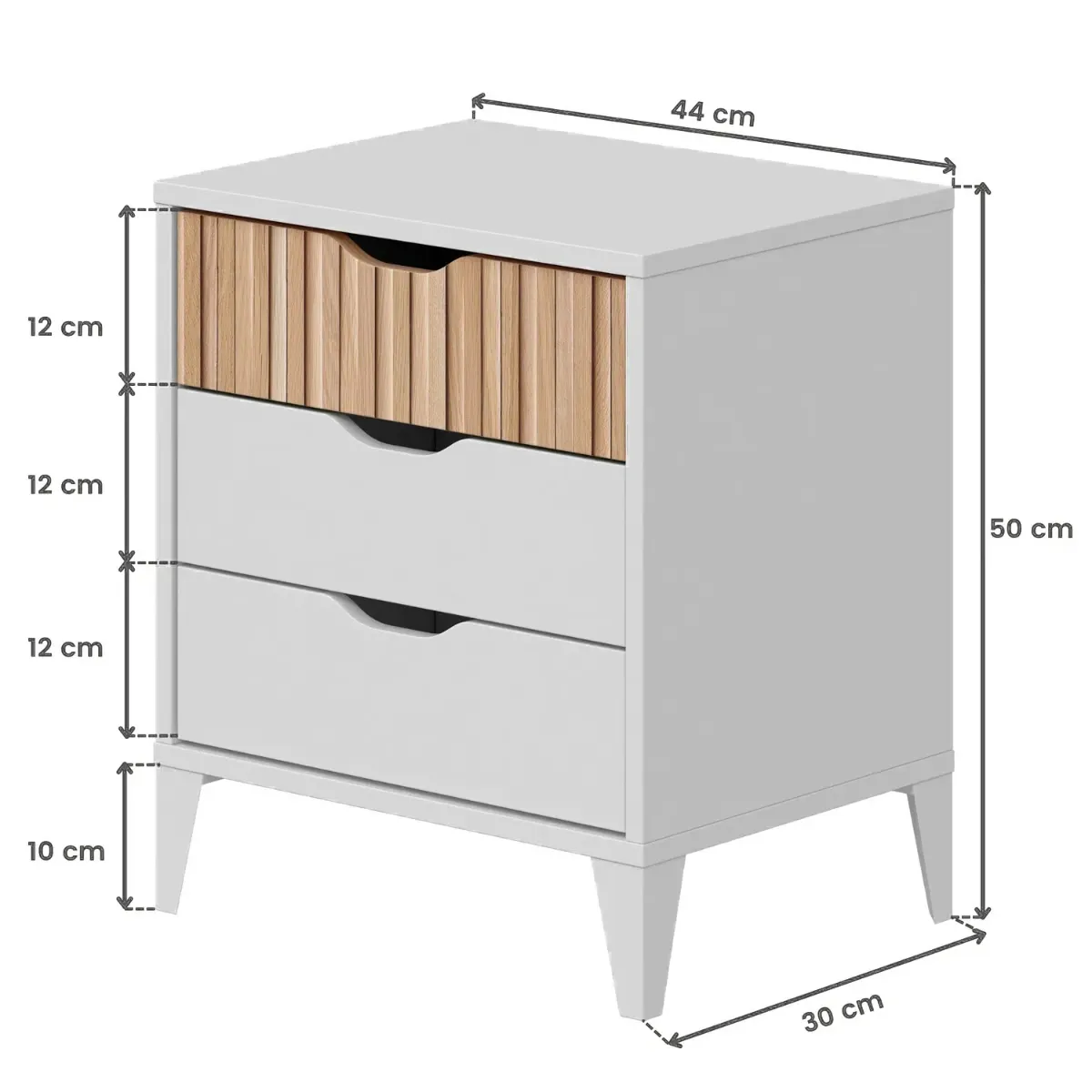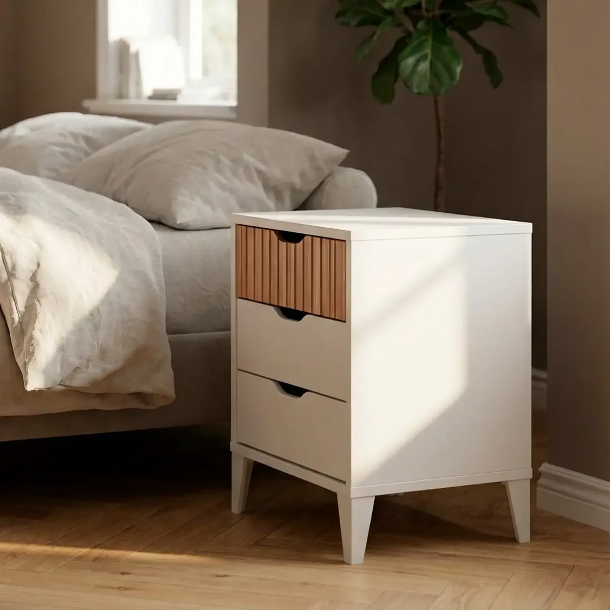 Comodino Stile Nordico Con 3 Cassetti Mobiletto Per Camera Da Letto Moderna Con Gambe Rialzate Mobile Design Scandinavo Zona Notte Salvaspazio 50 x 44 x 33 Cm