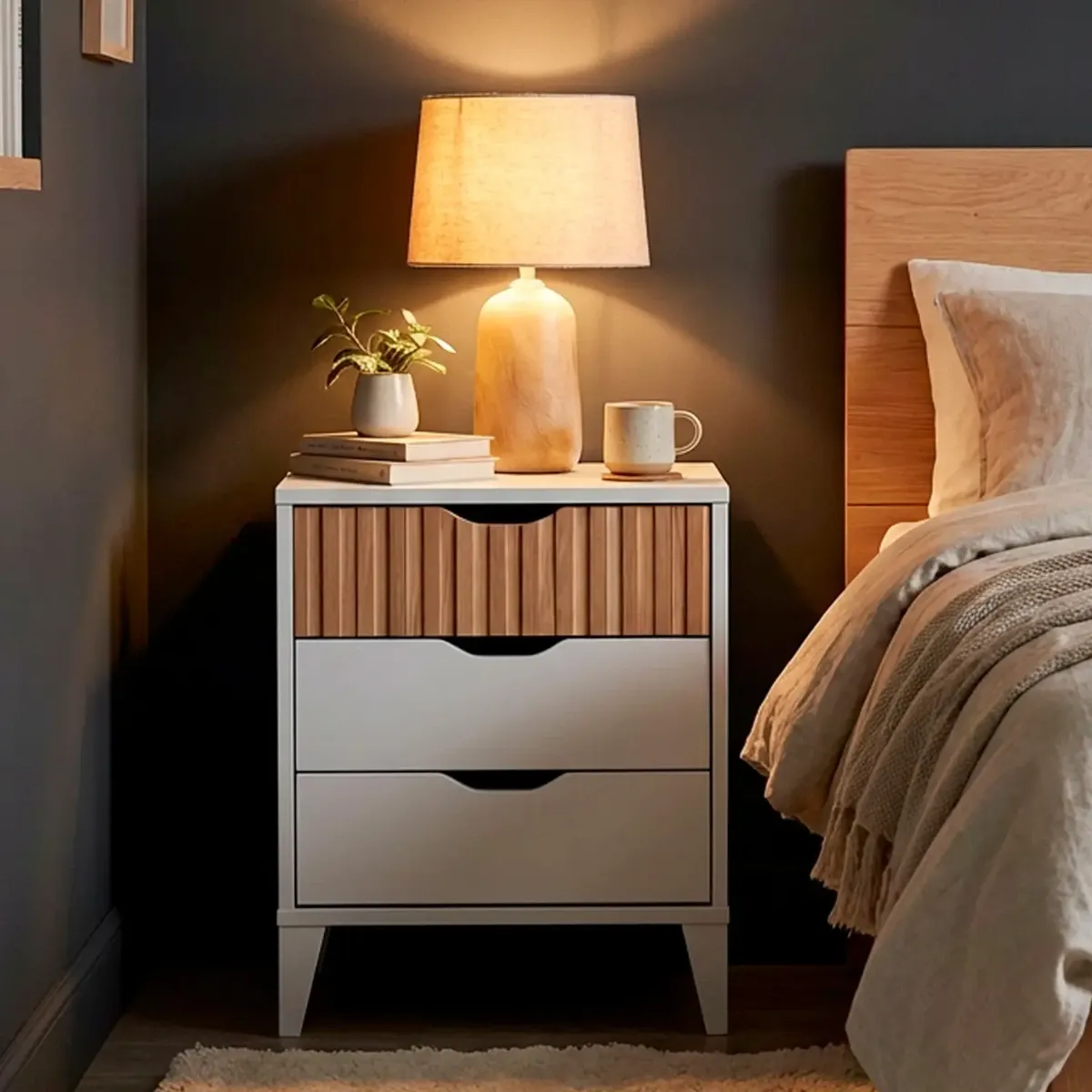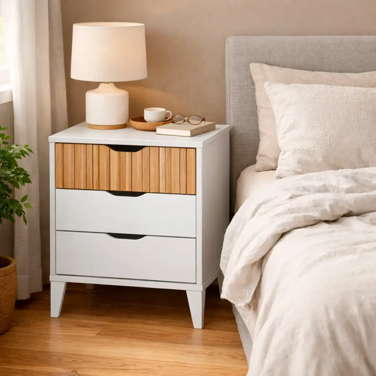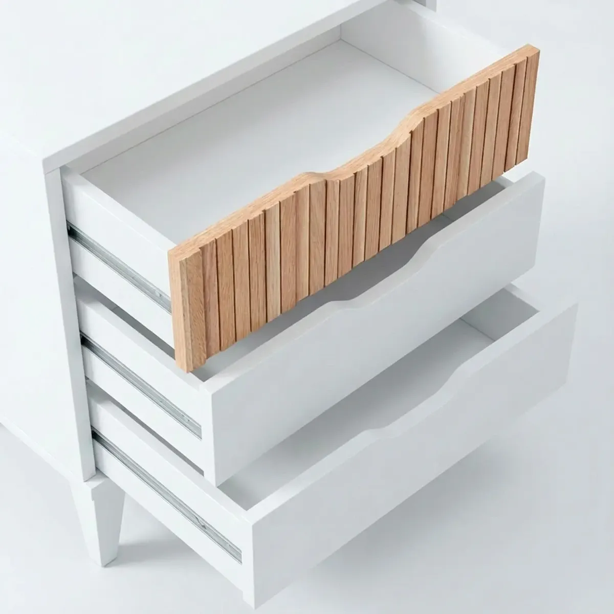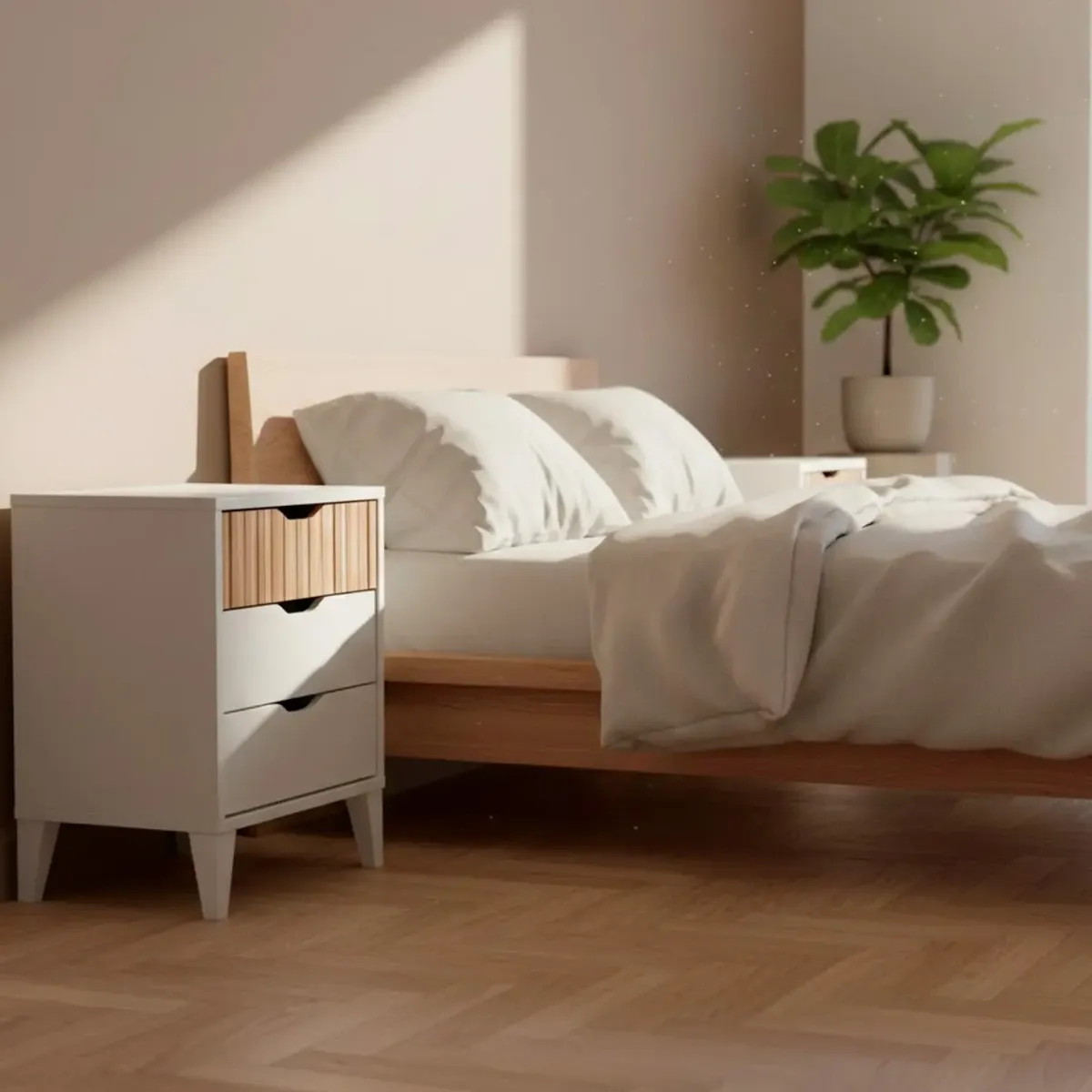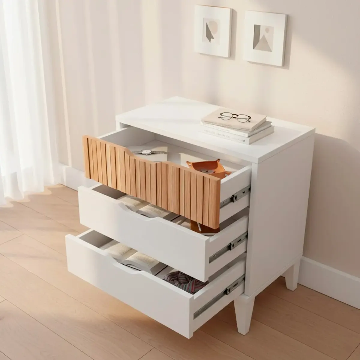 Comodino Stile Nordico Con 3 Cassetti Mobiletto Per Camera Da Letto Moderna Con Gambe Rialzate Mobile Design Scandinavo Zona Notte Salvaspazio 50 x 44 x 33 Cm
