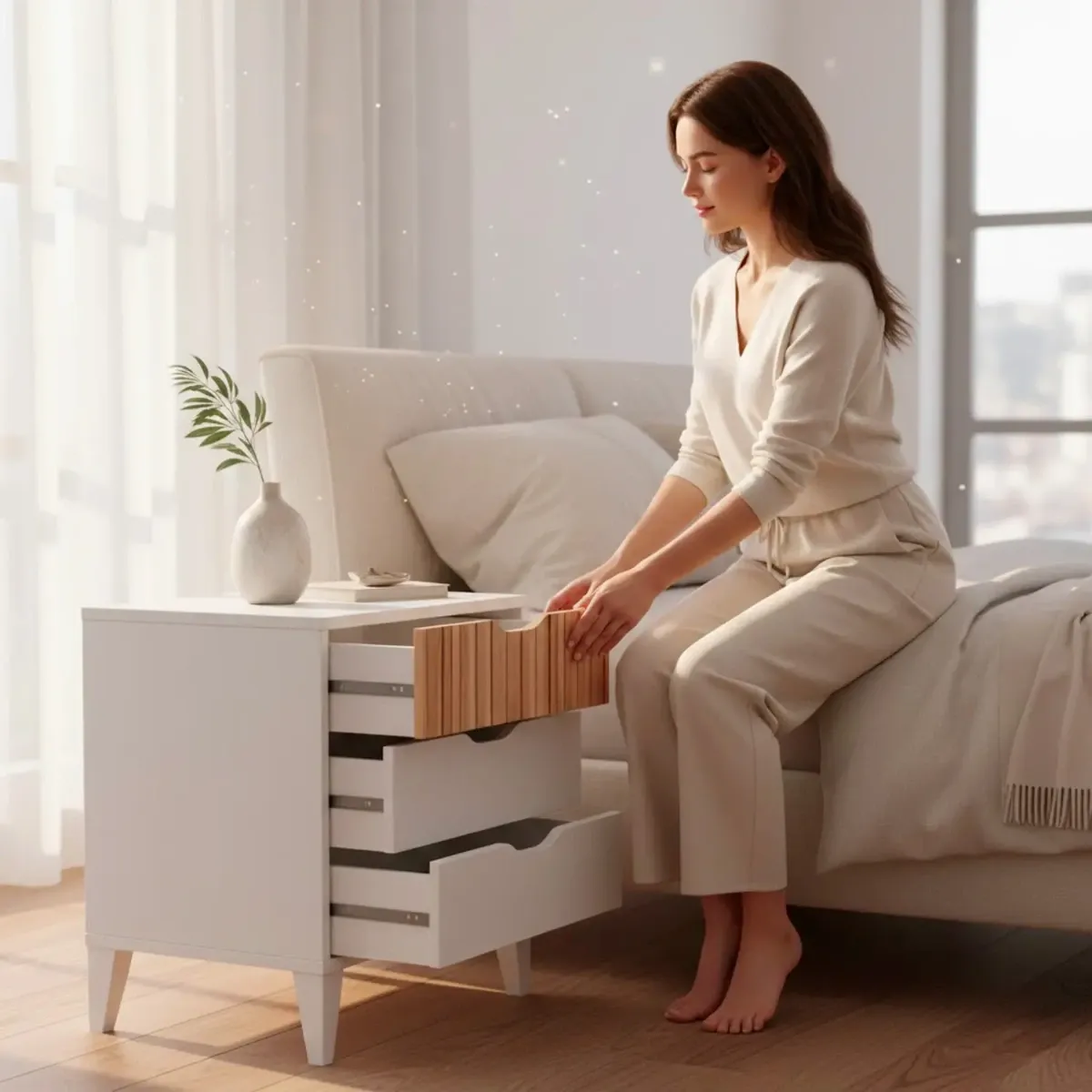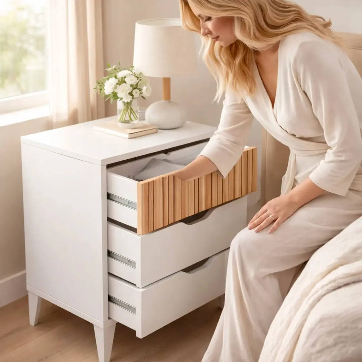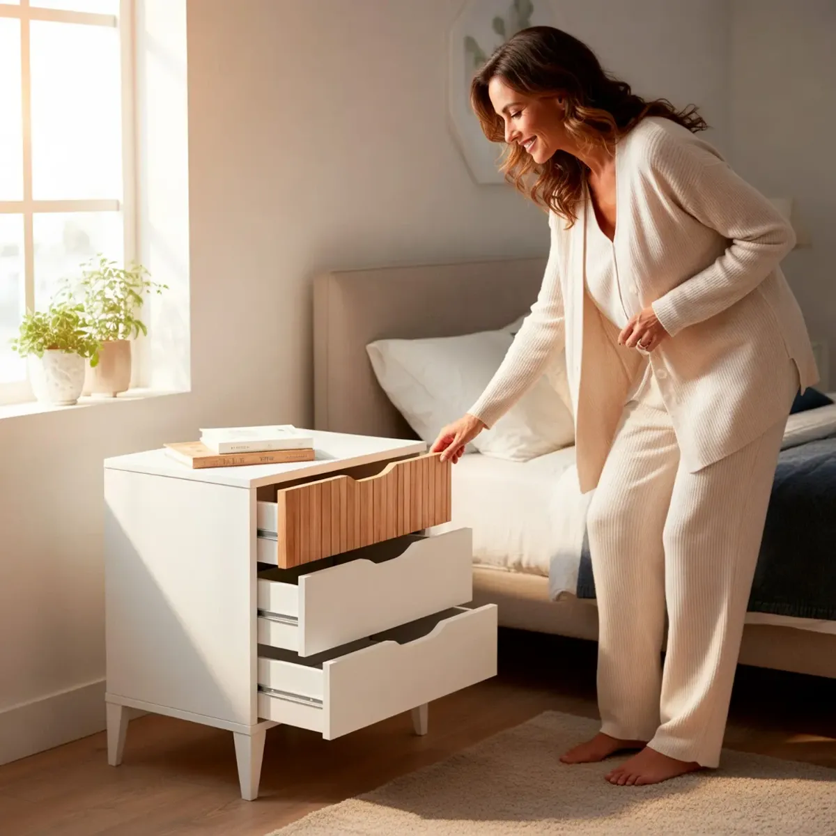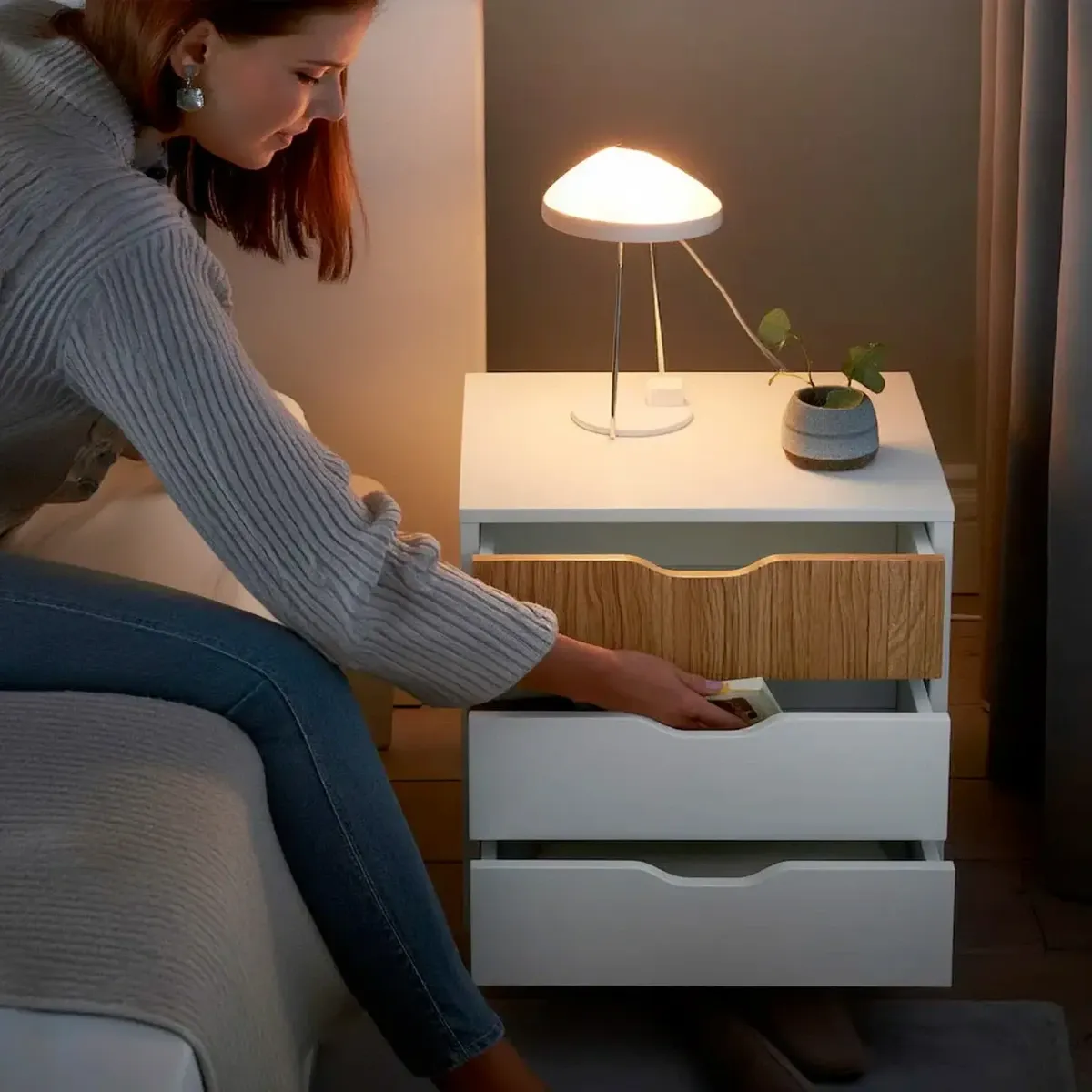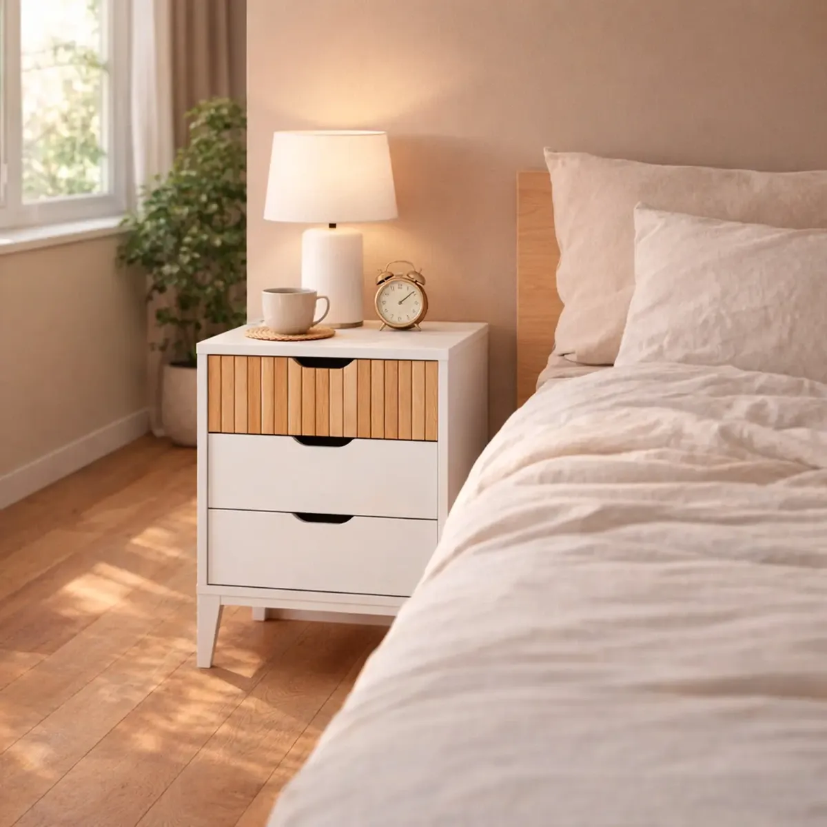 Comodino Stile Nordico Con 3 Cassetti Mobiletto Per Camera Da Letto Moderna Con Gambe Rialzate Mobile Design Scandinavo Zona Notte Salvaspazio 50 x 44 x 33 Cm
