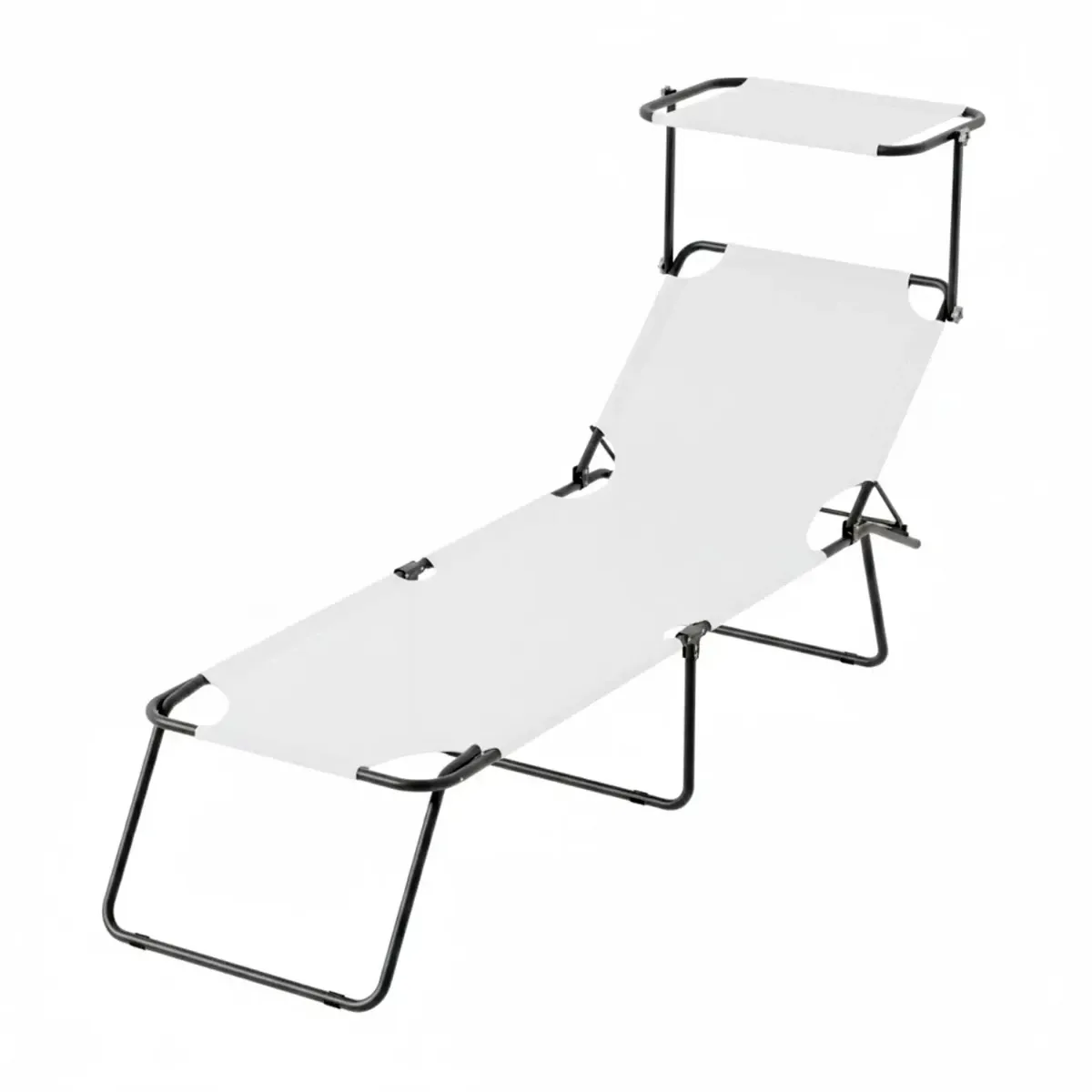 Lettino Pieghevole Con Tettuccio Regolabile Prendisole Parasole Schienale Reclinabile Regolabile Struttura In Metallo Nero Sedia Sdraio Per Spiaggia Mare Giardino Piscina 187 x 53 x 24 Cm