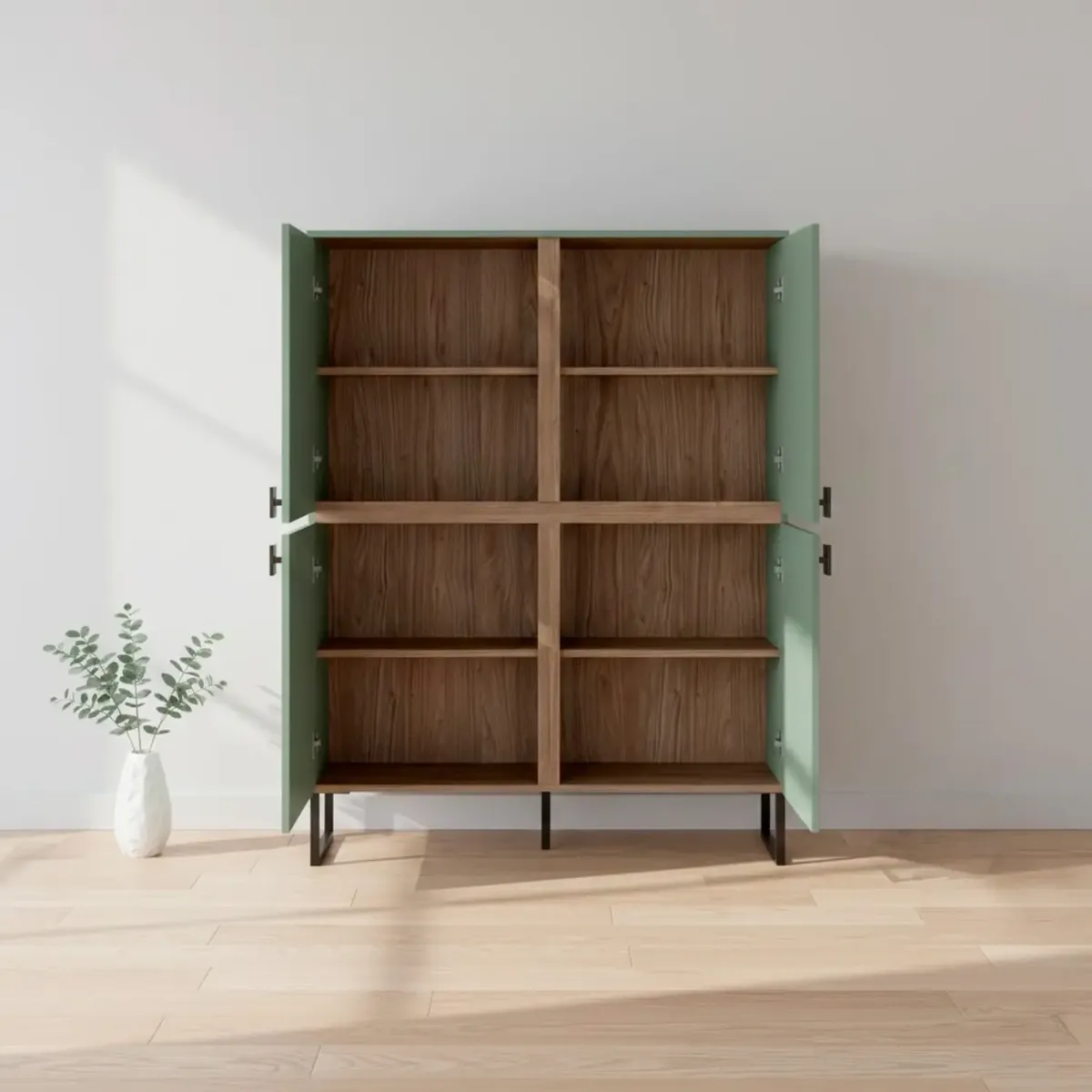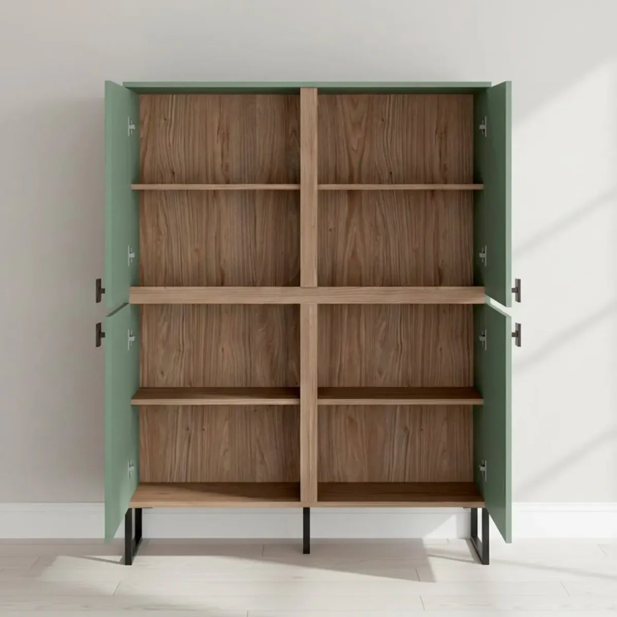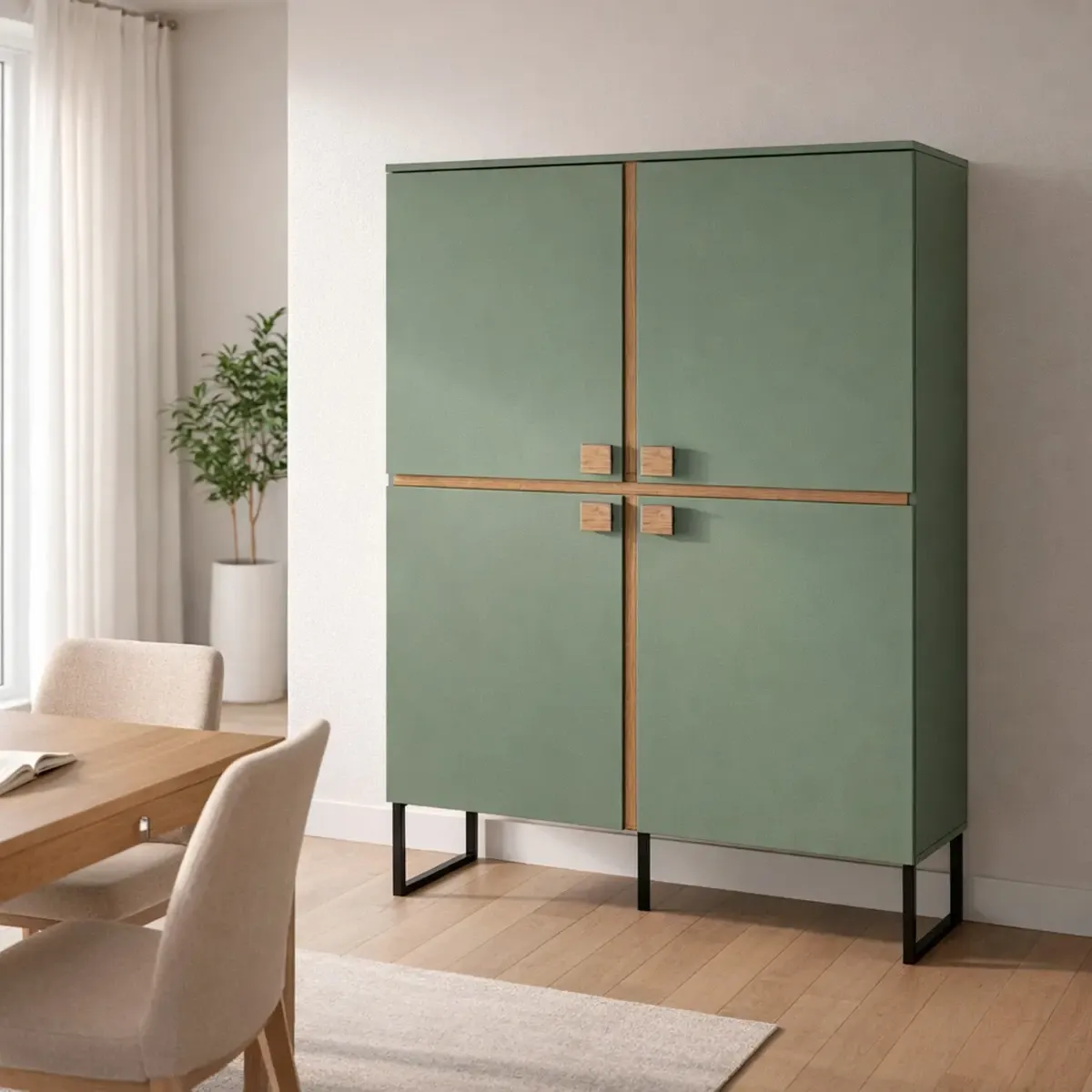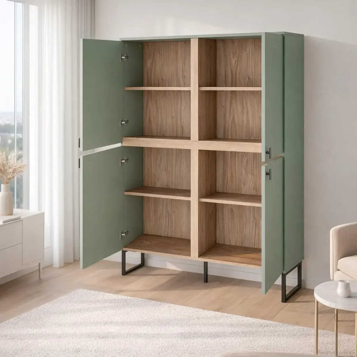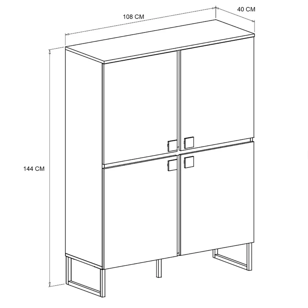 Madia Alta 4 Ante Mobile Soggiorno Moderno Con 4 Ripiani Interni E Piedini Neri Design Elegante Per Sala Da Pranzo Salotto Zona Living 108 x 144 x 40 Cm