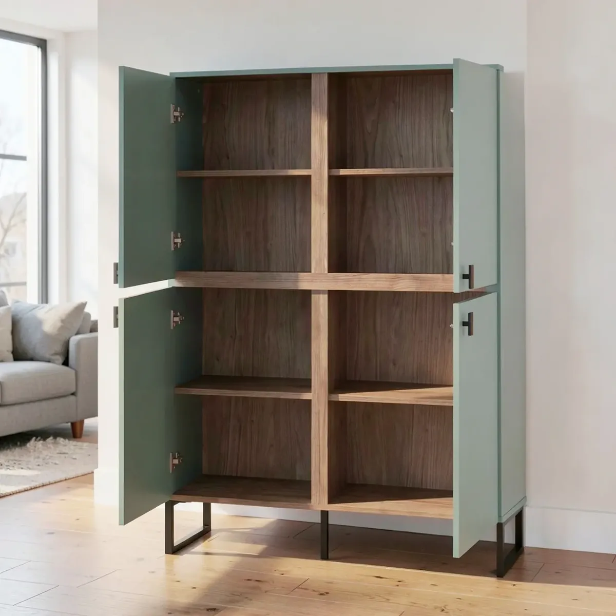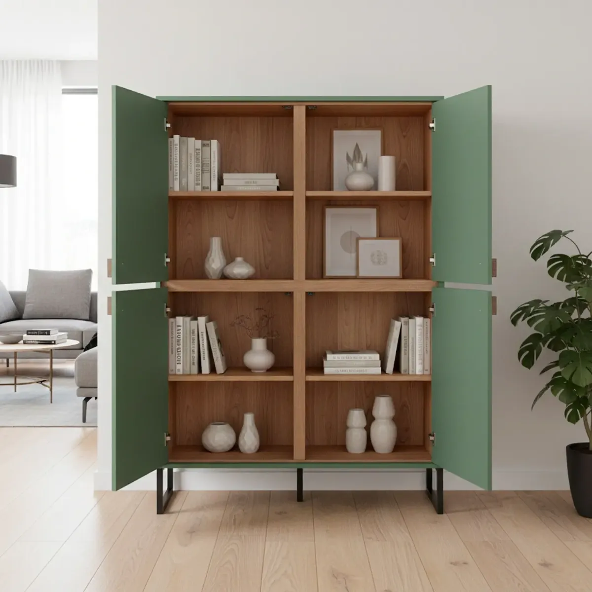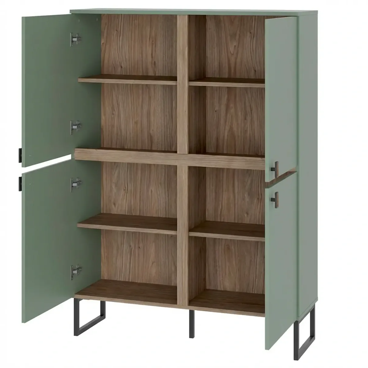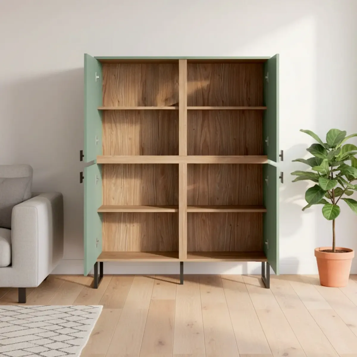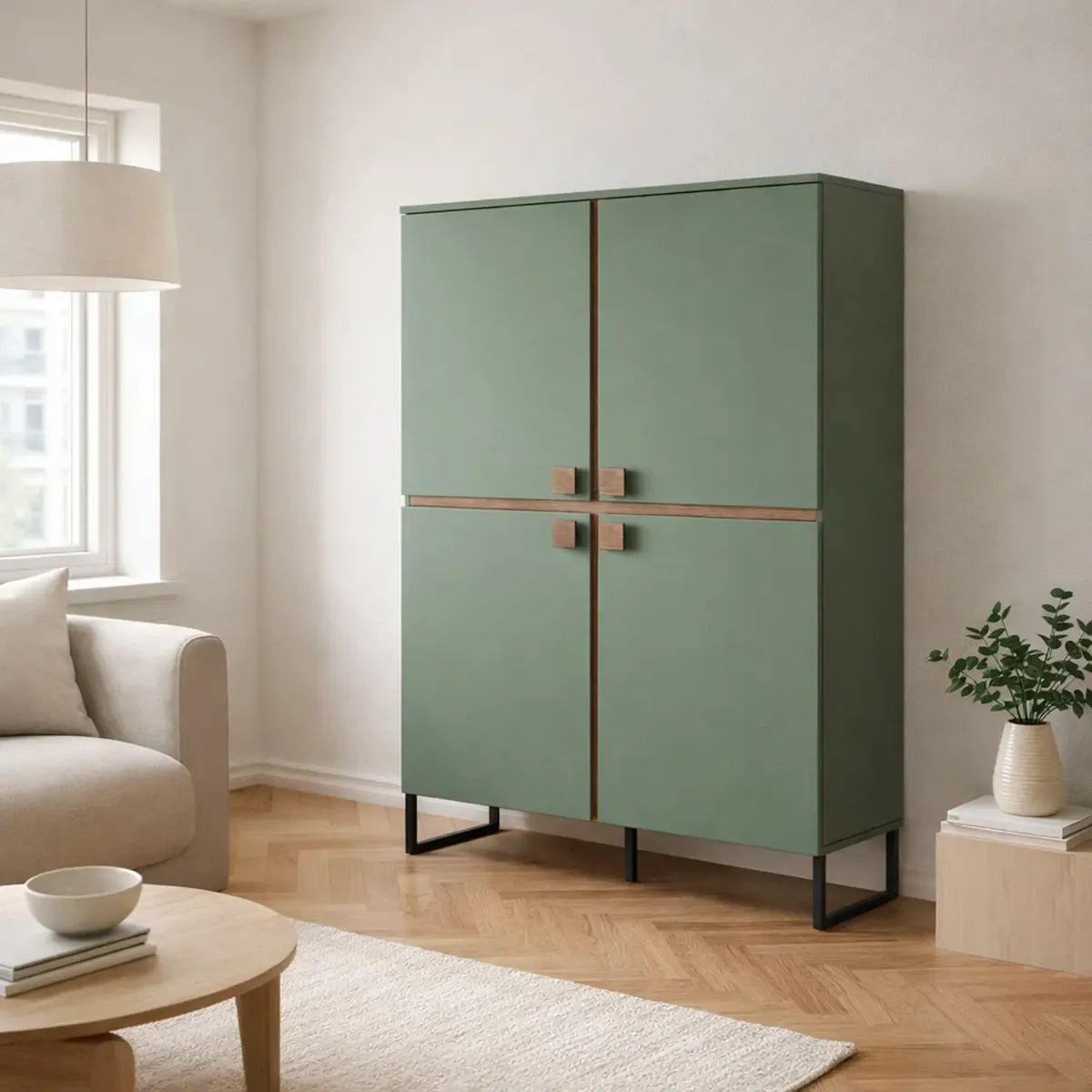 Madia Alta 4 Ante Mobile Soggiorno Moderno Con 4 Ripiani Interni E Piedini Neri Design Elegante Per Sala Da Pranzo Salotto Zona Living 108 x 144 x 40 Cm