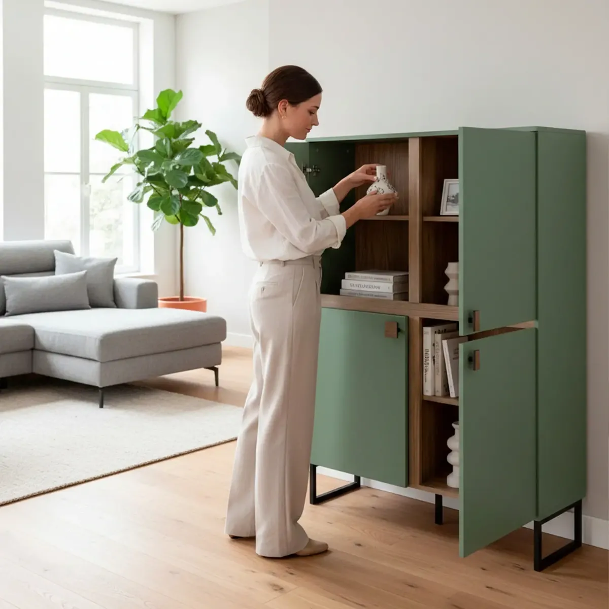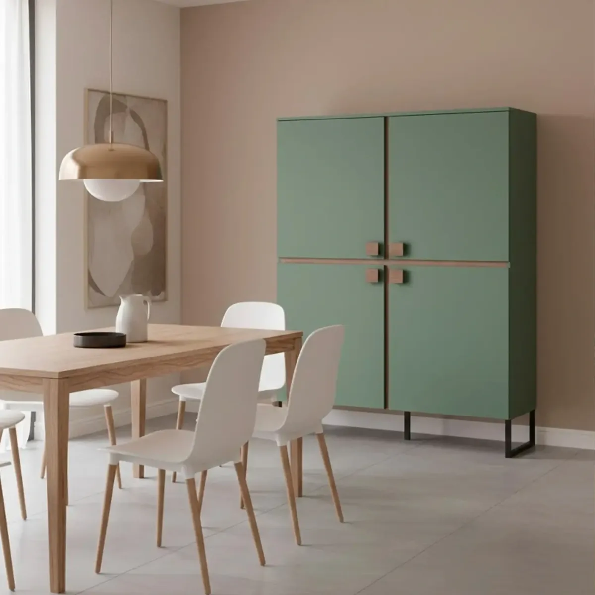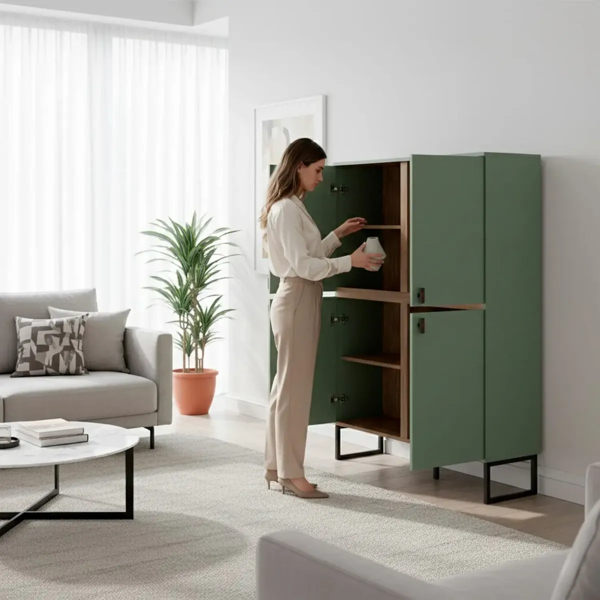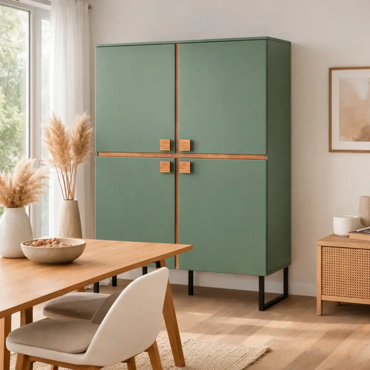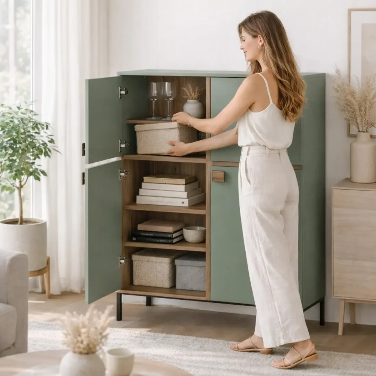 Madia Alta 4 Ante Mobile Soggiorno Moderno Con 4 Ripiani Interni E Piedini Neri Design Elegante Per Sala Da Pranzo Salotto Zona Living 108 x 144 x 40 Cm