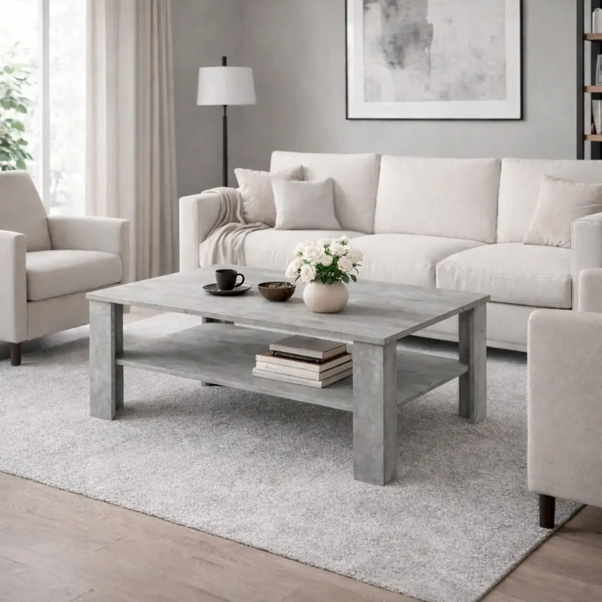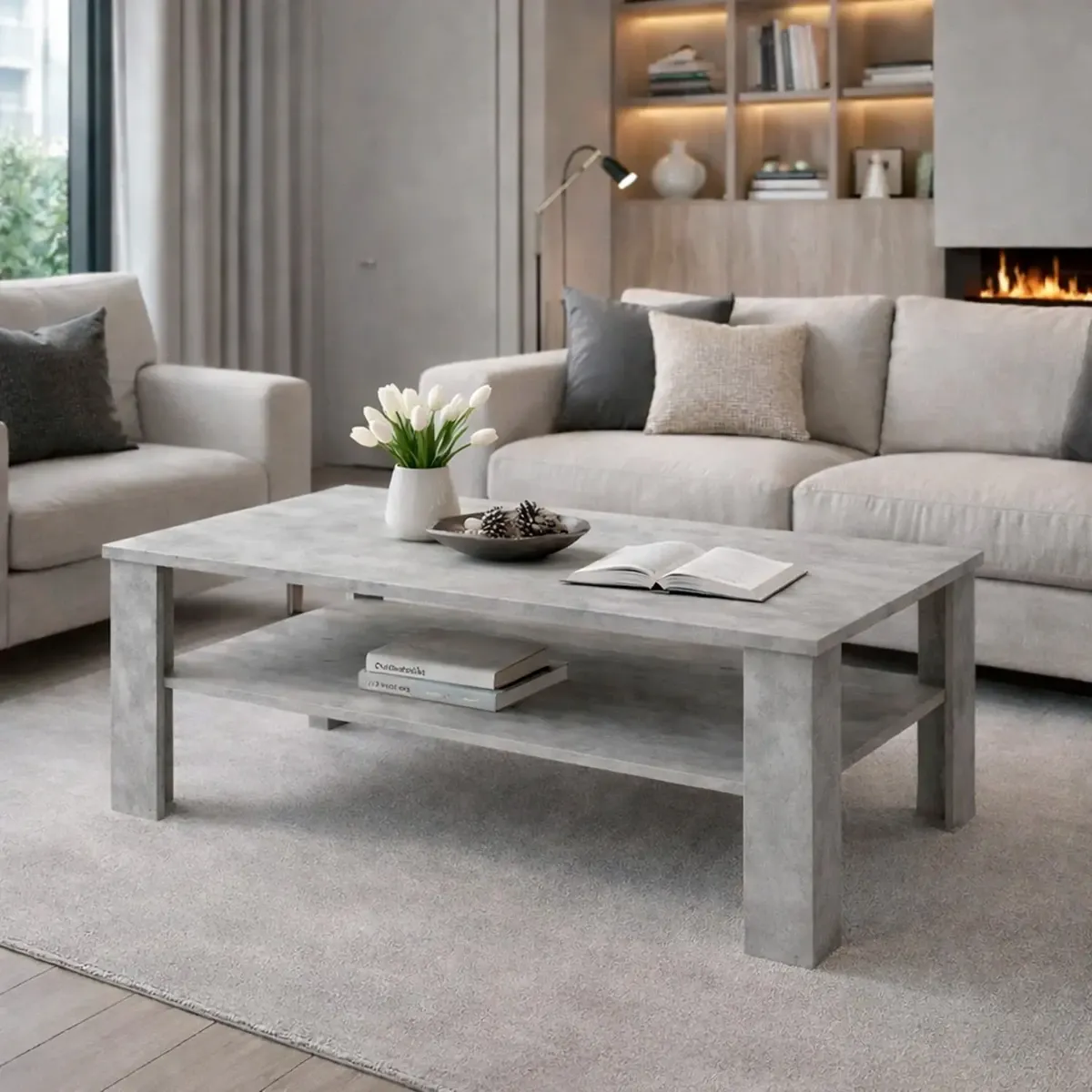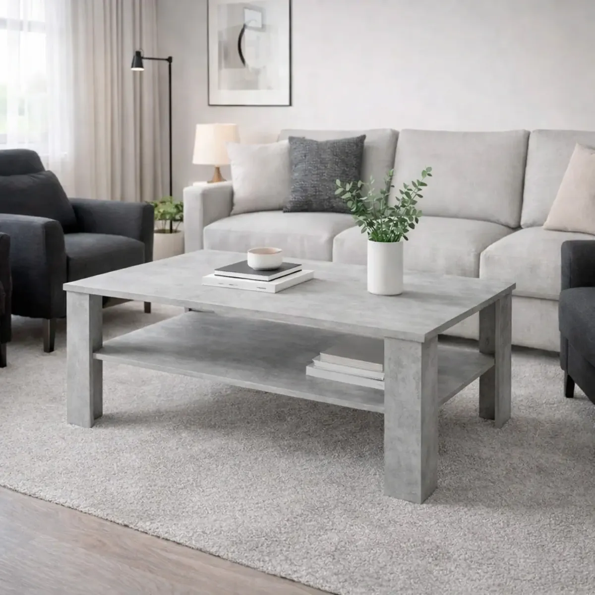 Tavolino Da Caffè Con Ripiano Inferiore E Vano A Giorno Tavolo Basso Stile Nordico Design Minimal Per Soggiorno Salotto Zona Living Struttura Resistente 47 x 110 x 65 Cm