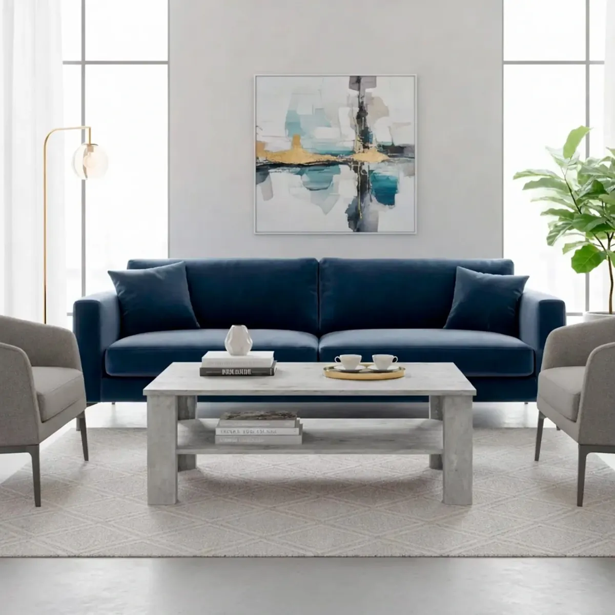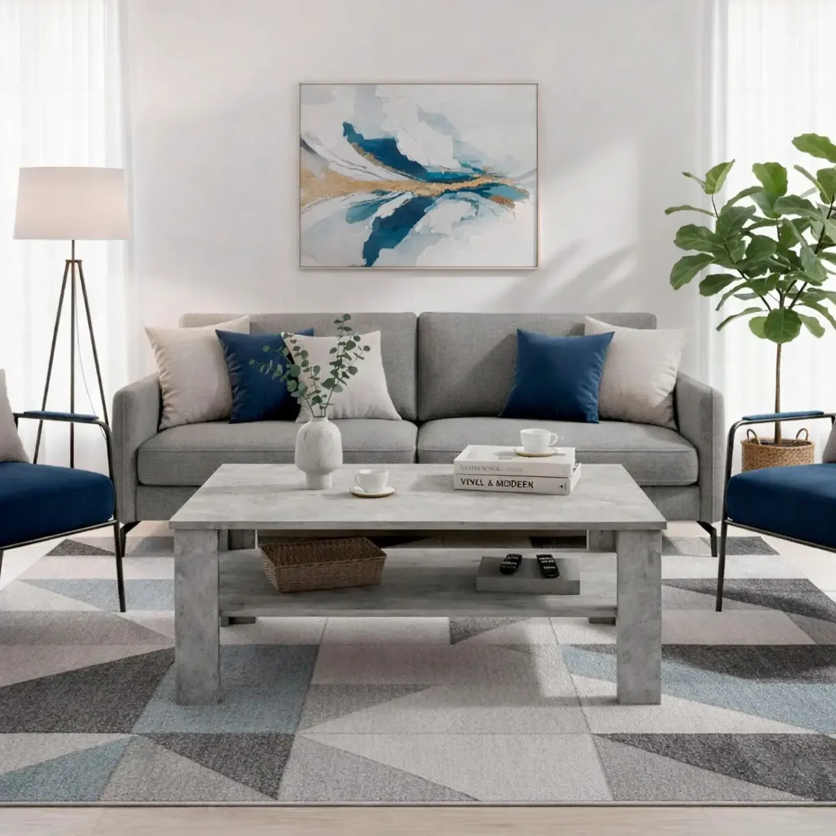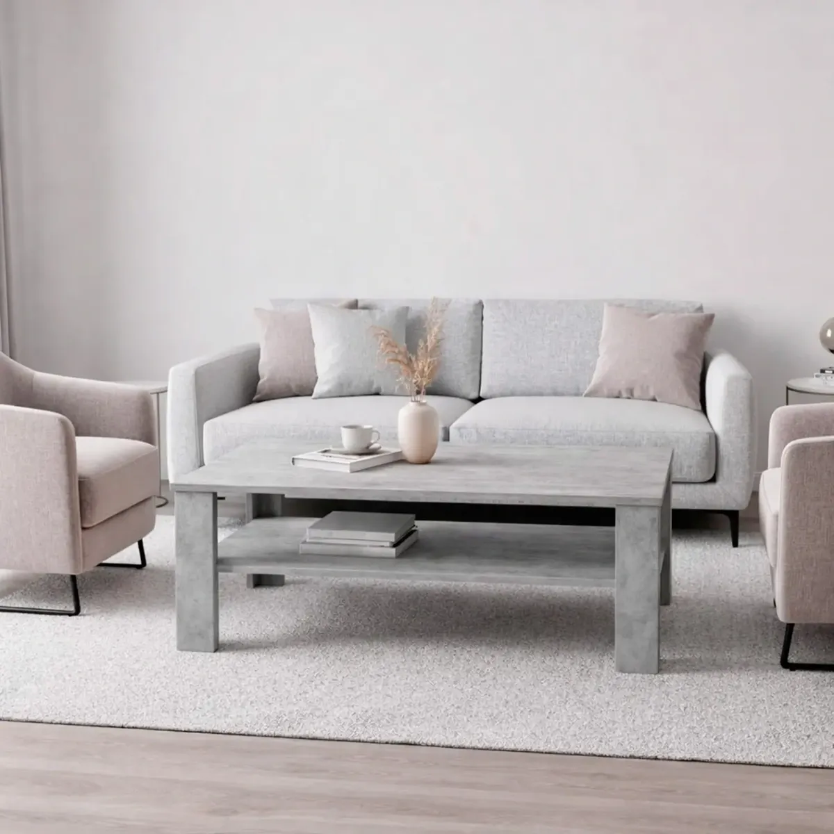 Tavolino Da Caffè Con Ripiano Inferiore E Vano A Giorno Tavolo Basso Stile Nordico Design Minimal Per Soggiorno Salotto Zona Living Struttura Resistente 47 x 110 x 65 Cm